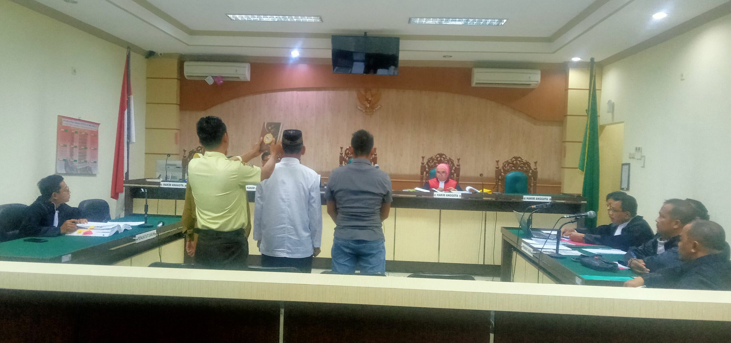 ” Dengan ini para pihak bisa menilai atas keterangan saksi ” ucap Febi Desry salah seorang anggota Majelis Hakim.
