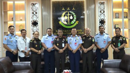 Kepala Kejaksaan Tinggi Kalimantan Selatan Tiyas Widiarto, S.H., M.H., didampingi Wakil Kepala KejaksaanTinggi Kalimantan Selatan (Kalsel) Sugiyanta, S.H., M.H., serta para Asisten pada KejaksaanTinggi Kalimantan Selatan menerima kunjungan silaturahmi Komandan Pangkalan TNI Angkatan Udara (AU) Hilman L.P. Ambarita, M.M.S. Selasa (24/2/ 26).