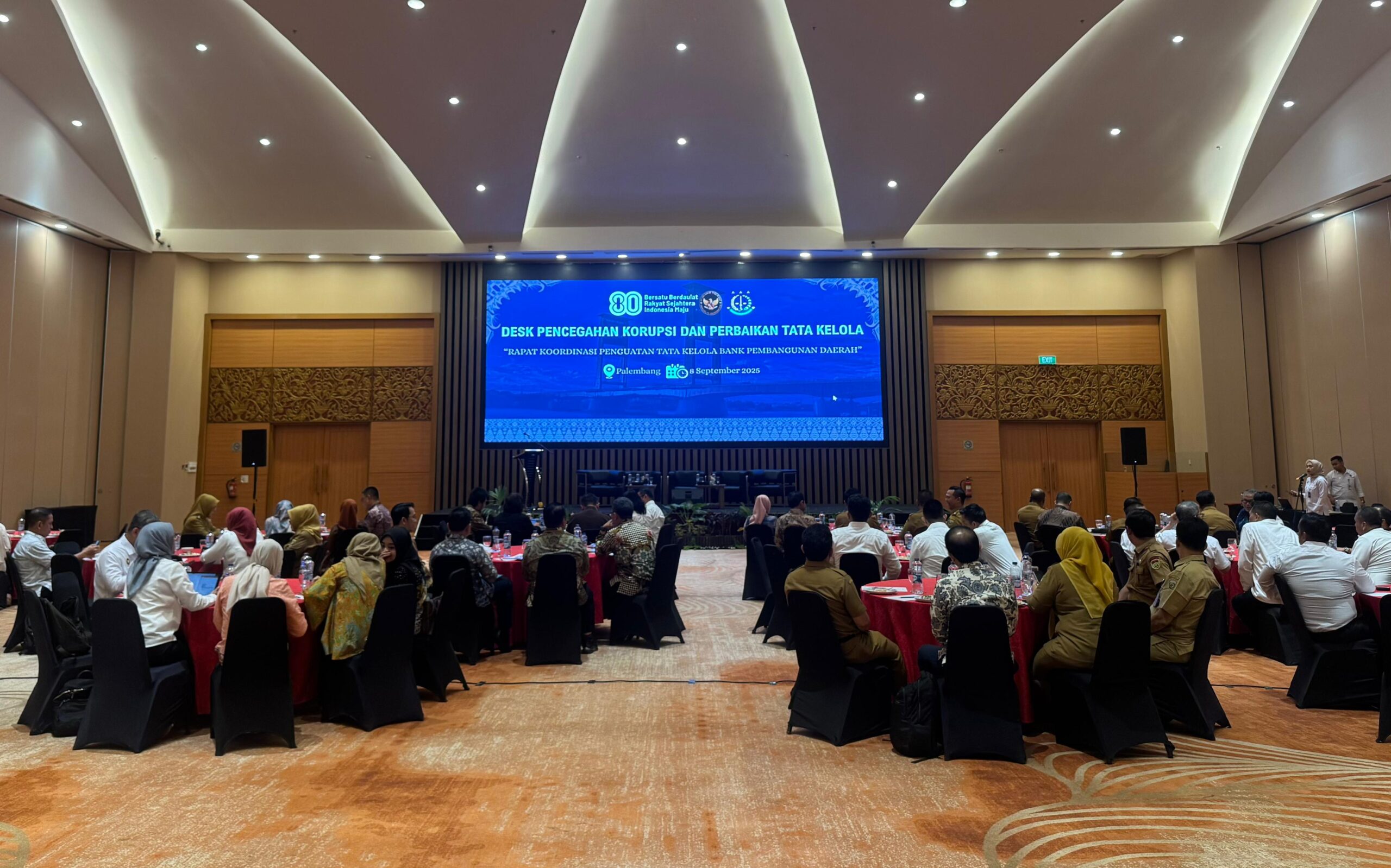 Palembang, Kementerian Koordinator Bidang Politik dan Keamanan (Kemenko Polkam) bersama Kejaksaan melalui Satgas Lembaga Jasa Keuangan pada Desk Koordinasi Pencegahan Korupsi dan Perbaikan Tata Kelola melaksanakan Rapat Koordinasi Penguatan tata kelola Bank Pembangunan Daerah (BPD) di Provinsi Sumatera Selatan, Provinsi Jambi, dan Provinsi Lampung, (Senin,08/09/2025).