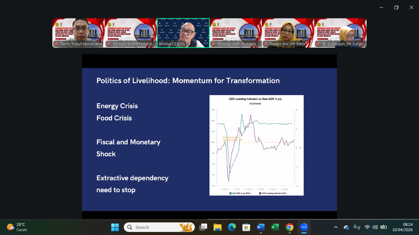 ”Kondisi Indonesia saat ini merupakan momentum penting dalam transformasi ekonomi. Ini menjadi saat yang tepat untuk mendekatkan seluruh kebijakan, proses peradilan, serta putusan hakim pada konsep politics of livelihood, yakni mengarahkan setiap kebijakan dan tindakan pada aspek-aspek yang berdampak langsung terhadap kehidupan ekonomi masyarakat. Dengan pendekatan tersebut, setiap keputusan yang diambil tidak hanya bernilai normatif, tetapi juga memiliki implikasi nyata terhadap penciptaan lapangan kerja, stabilitas harga kebutuhan pokok, serta pemenuhan kebutuhan hidup sehari-hari,” ujarnya.