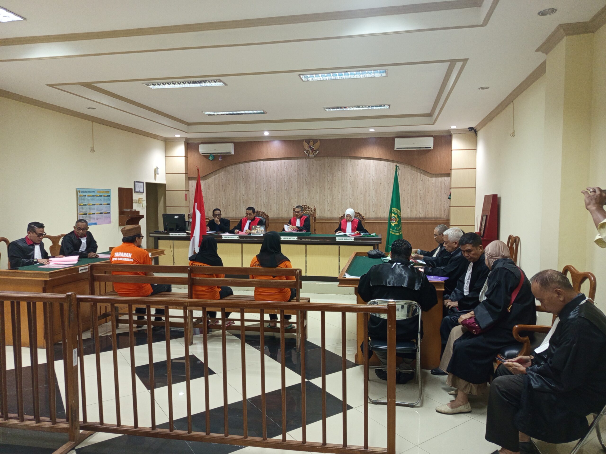 Tiga Terdakwa yaitu dua eks mantri Bank BRI Unit Kuin Alalak, M. Madiyana Gandawijaya SH dan Hairunisa, satunya lagi Rabiatul Adawiyah warga sipil dihadirkan dalam persidangan oleh Majelis Hakim yang diketuai Irfannoor Hakim SH MH Rabu (4/2/26).