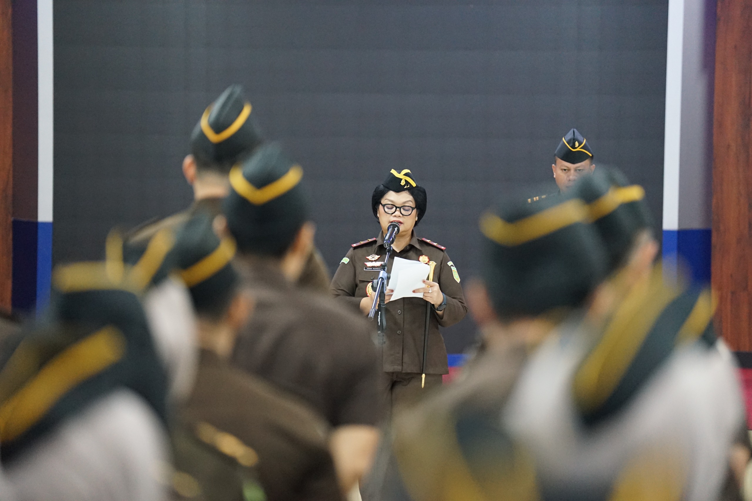 Bertindak selaku inspektur upacara, Kepala Kejaksaan Tinggi Banten Bernadeta Maria Erna Elastiyani, S.H., M.H yang diikuti oleh Wakil Kepala Kejaksaan Tinggi Banten Ardito Muwardi, S.H.M.H bersama para Asisten, Koordinator, Kabag TU dan seluruh pegawai Kejaksaan Tinggi Banten.