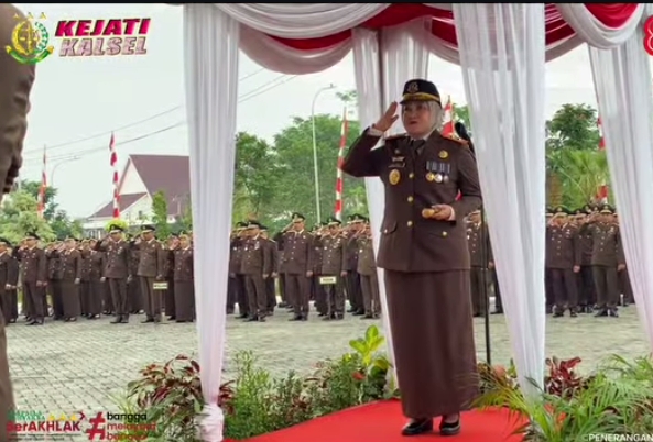 Kepala Kejaksaan Tinggi (Kajati )Kalimantan Selatan, Rina Virawati, S.H., M.H., memimpin pelaksanaan Upacara di halaman Kantor Kejaksaan Tinggi Kalimantan Selatan, Minggu (17/8/2025).