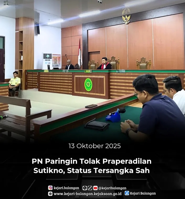 Praperadilan yang diajukan oleh Sutikno mantan Sekda Kabupaten Balangan yang didampingi Penasihat Hukumnya dari Firma Victoria, karena adanya dugaan cacat prosedur dalam penetapan dirinya sebagai Tersangka dalam perkara korupsi dana hibah majelis ta’lim Alhamid diKabupaten Balangan akhirnya rontok.