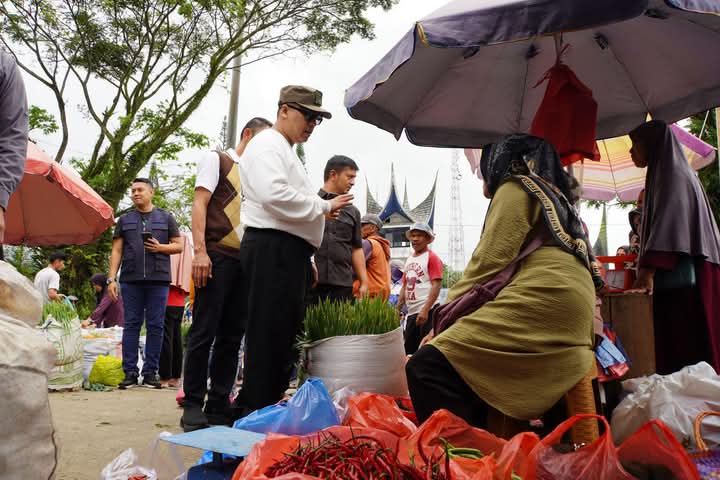 Padang Panjang, Wali Kota, Hendri Arnis bersama Wakil Wali Kota, Allex Saputra lakukan kunjungan ke Pasar Sayur Bukit Surungan (Busur), Ahad (23/3/2025). Kegiatan ini bertujuan menyerap langsung aspirasi dari para pedagang terkait berbagai isu yang mereka hadapi dalam menjalankan kegiatan ekonomi di pasar tersebut.